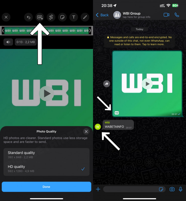 "Новая опция не позволит пользователям делиться видео в их исходном качестве, но мы можем заверить вас, что качество пересылаемых видео резко улучшится", - пишут аналитики издания, протестировавшие функцию в бета-версии.