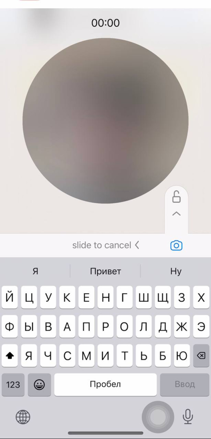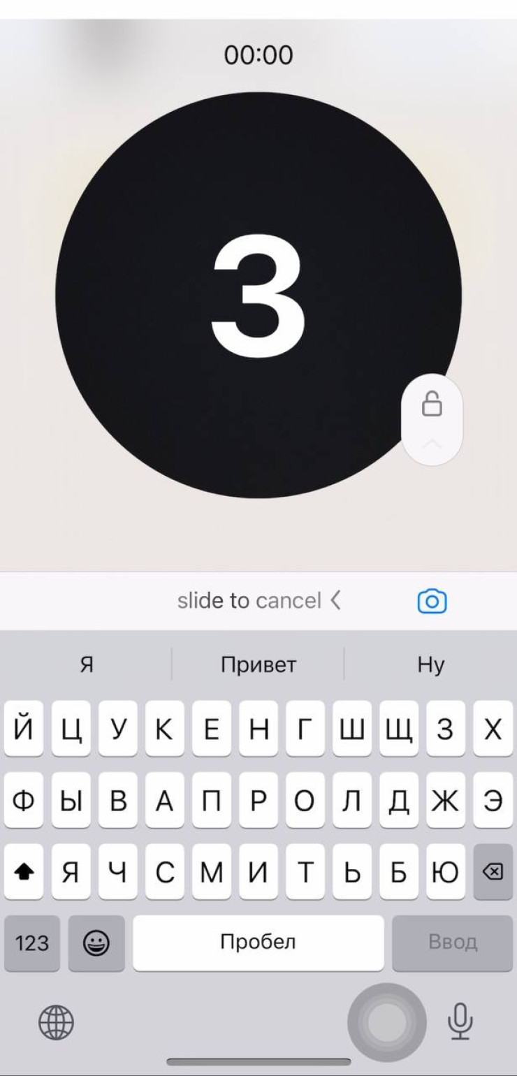 - Затем начнется обратный отсчет и запись видеосообщения. Для того чтобы отменить запись, необходимо провести пальцем справа налево.