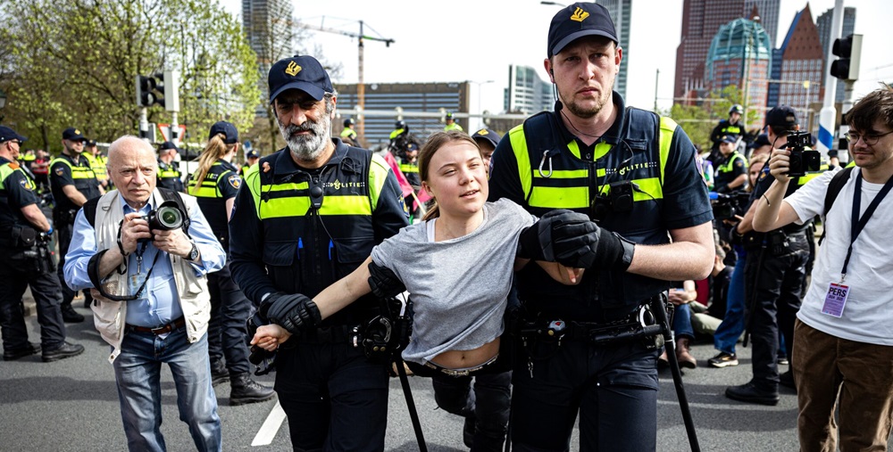 Шведская активистка по вопросам климата Грета Тунберг находилась среди десятков протестующих, арестованных в Гааге (Нидерланды) в субботу днем.