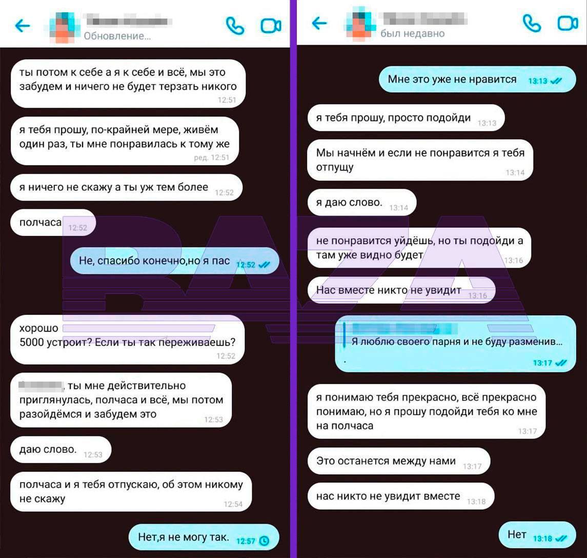 Когда девушка пришла за телефоном, проводник попытался закрыть дверь и продолжил убеждать девушку, что это будут лучшие несколько минут в ее жизни.