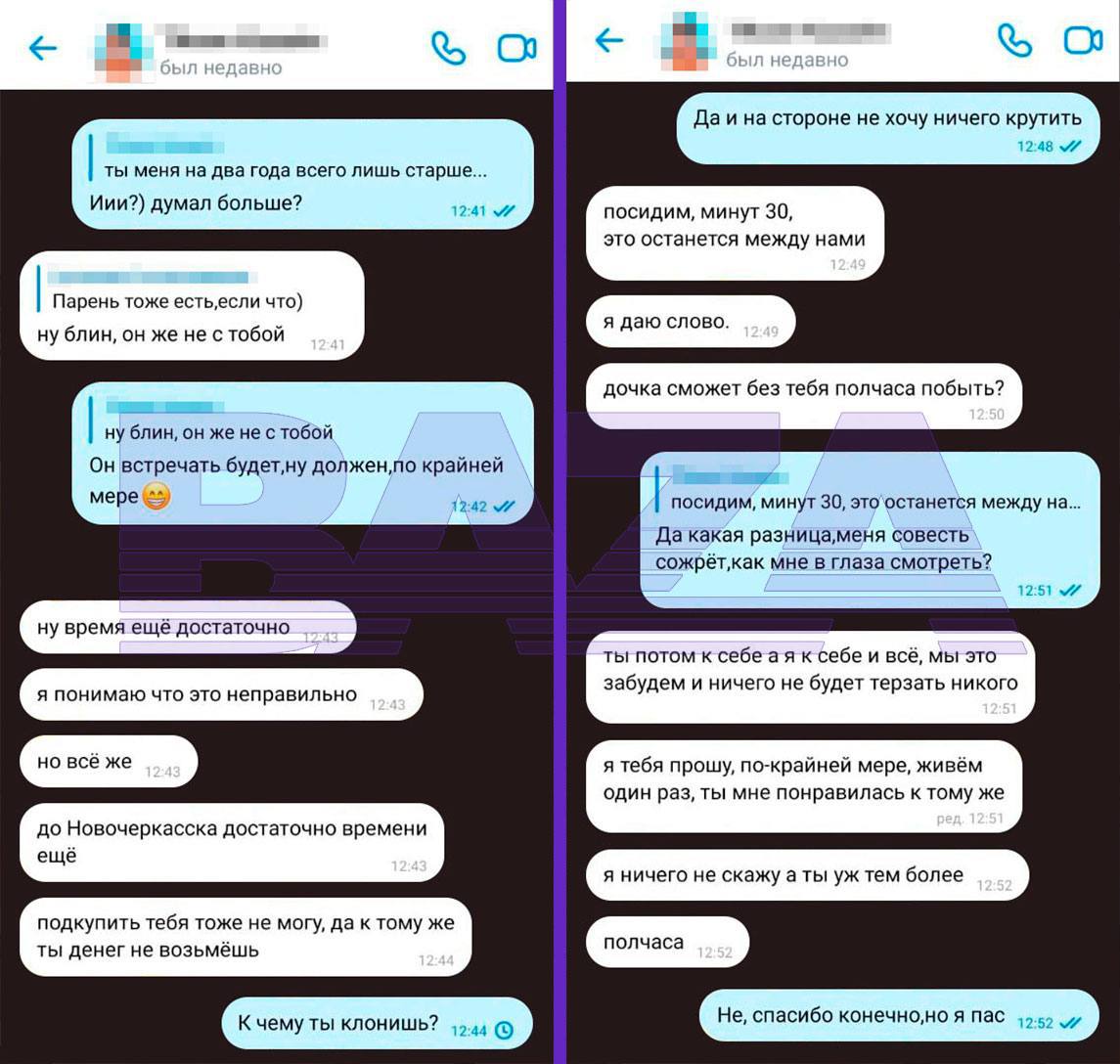 25 сентября 25-летняя Марина (имя изменено) отправилась вместе со своей трехлетней дочерью из Москвы в Новочеркасск. Когда поезд уже выехал за пределы столицы, девушке пришло сообщение от неизвестного человека. Позже выяснилось, что ей написал проводник ее вагона Владимир (имя изменено).