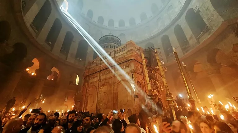Схождение Благодатного огня происходит накануне праздника Воскресения Христова по юлианскому календарю. В 2025 году христиане отметят Пасху 20 апреля, ее дата совпадет для западной и восточной ветвей христианства. Огонь появляется в храме Гроба Господня в Иерусалиме, который возведен над пространством, где был распят, погребен и воскрес Иисус Христос. В храме находится делегация Фонда Андрея Первозванного (ФАП), которая прибыла в Иерусалим накануне для того, чтобы доставить Благодатный огонь в Москву.