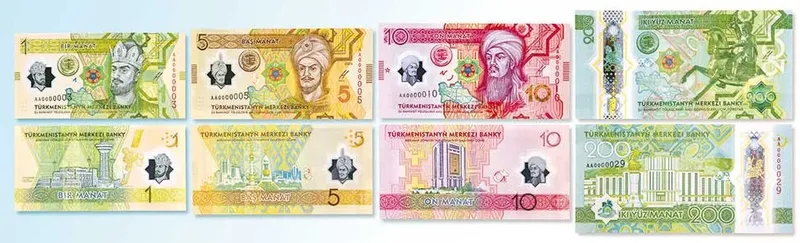 • модифицированные полимерные купюры номиналом 1, 5 и 10 манатов,